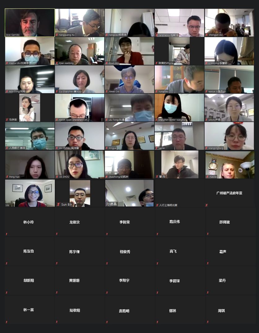 The CICDC presented a virtual workshop on Corporate and Household Insolvency on January 18-29, 2021. The workshop was delivered by staff from the IMF Legal Department and attended by 50 participants from the PBC, the National People's Congress, the judiciary, and other agencies responsible for the revision and implementation of the Enterprise Bankruptcy Law of China. The training was based on a comparative approach, with references to advanced legal systems and the international standard.